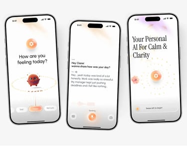 The goal of this project was to design a mobile wellness app," ClaraEcho," a mobile wellness app delivering seamless emotional support through intuitive UI/UX. Prioritizing user-friendliness, the personalized AI companion features clean interfaces and soft pastel colors like soothing lavenders and whites, to evoke calmness, helping users share daily feelings via voice chats effortlessly